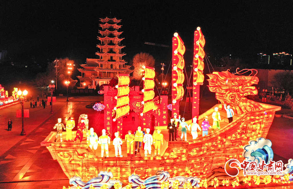 春節(jié)臨近,甘肅省張掖市甘州區(qū)文化廣場(chǎng)、公園等地,各種大型彩燈把城市裝扮得火樹(shù)銀花、璀璨繽紛,大街小巷彰顯著歡樂(lè)喜慶的節(jié)日氣氛,年味十足。