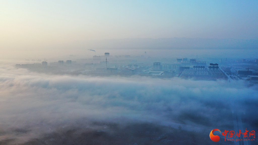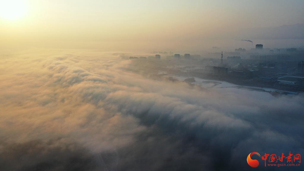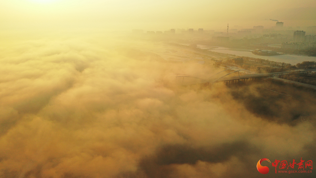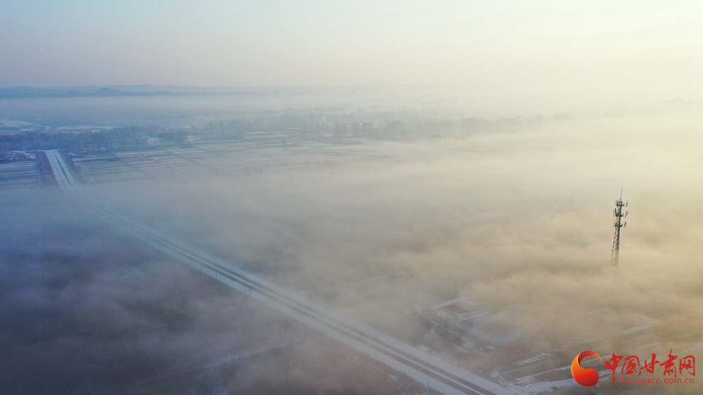 2月8日清晨,甘肅張掖市高臺(tái)縣黑河國家城市濕地公園上空霧浪翻滾,虛無縹緲,恍如天宮仙境,呈現(xiàn)出海市蜃樓般的云海奇觀,在陽光的照射下,格外美麗。由于多年來黑河生態(tài)治理,冬天封凍,加之近日大范圍的降雪低溫天氣,黑河的水面上經(jīng)常霧氣蒸騰,兩岸的樹木玉樹瓊花,形成霧凇景觀,如同童話世界里的仙境一般圣潔,令人心曠神怡。