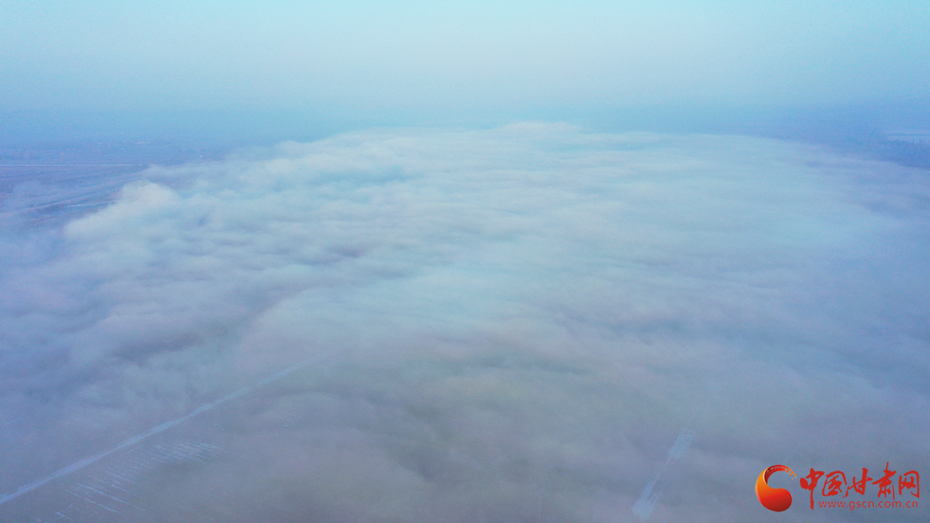 張掖市高臺(tái)縣黑河國家城市濕地公園上空的云海景觀。