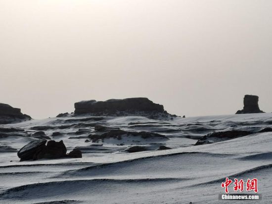 13   甘肅敦煌雅丹地貌現(xiàn)罕見春雪