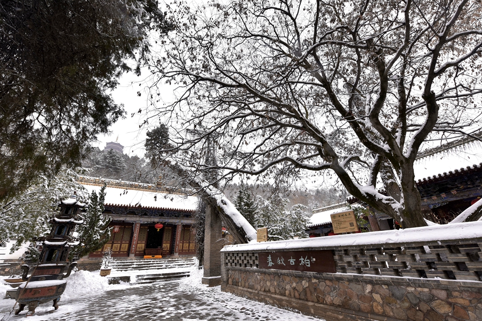 曲徑幽道縈回,亭臺殿閣迤邐,飛騰俄頃遺仙室,靜觀紅亭思故語。不知除卻春夏秋的清然靜謐,冬日焚香論道的絲絲煙火氣,又能勾勒出幾分傳說的神秘感。