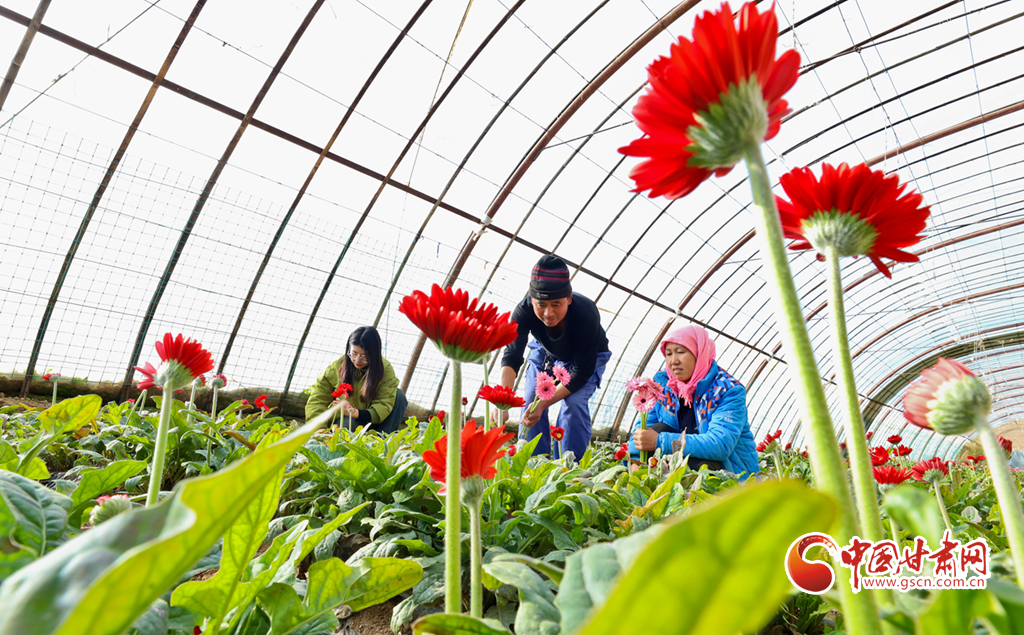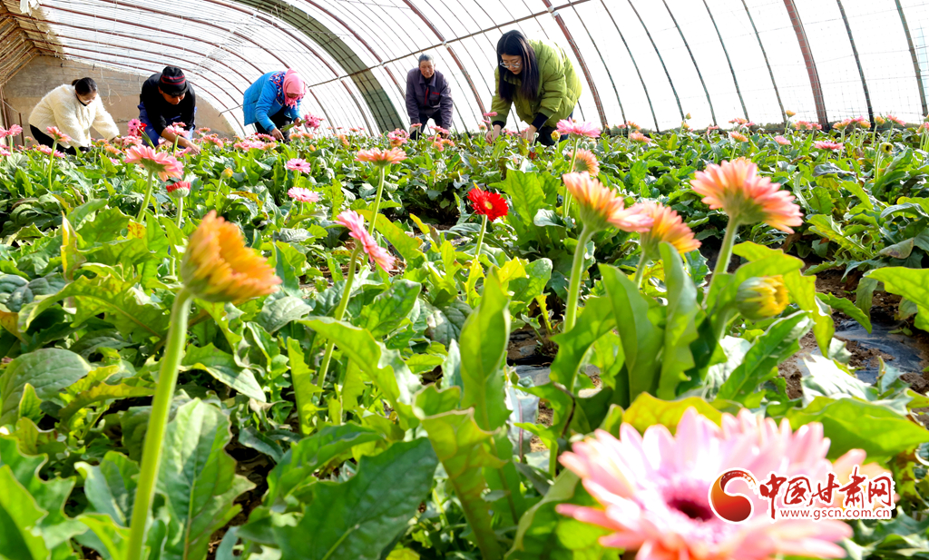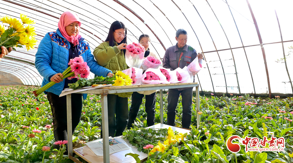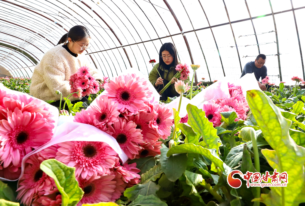 11月28日,臨澤縣倪家營鎮(zhèn)梨園村鮮切花種植基地大棚內(nèi),花農(nóng)和鄉(xiāng)鎮(zhèn)干部志愿者們正在忙碌采摘、分揀、打刺、包裝,按訂單發(fā)往周邊各地市。