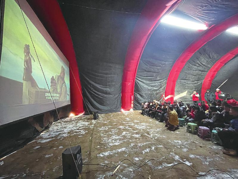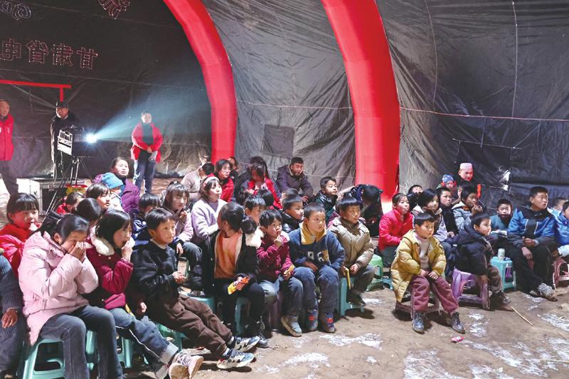 冬日的嚴(yán)寒擋不住震區(qū)群眾的觀影熱情。帳篷內(nèi),電影《英雄若蘭》《新神榜:楊戩》先后放映,孩子們分排而坐,被影片生動(dòng)有趣、跌宕起伏的情節(jié)深深吸引,不時(shí)傳出歡聲笑語(yǔ)。“志愿者給我們放電影,豐富了我們的文化生活。”正在觀影的村民呂鵬說(shuō)。