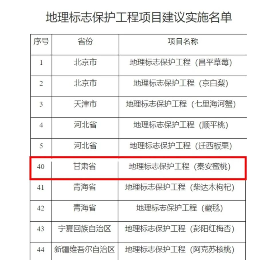 日前,國家知識(shí)產(chǎn)權(quán)局辦公室發(fā)布《關(guān)于2024年地理標(biāo)志保護(hù)工程實(shí)施名單的公示》,經(jīng)省級(jí)知識(shí)產(chǎn)權(quán)局審核推薦,國家知識(shí)產(chǎn)權(quán)局對(duì)申報(bào)推薦名單進(jìn)行綜合評(píng)審,擬定2024年地理標(biāo)志保護(hù)工程實(shí)施名單。其中《秦安蜜桃》榜上有名,是甘肅省唯一入選項(xiàng)目。