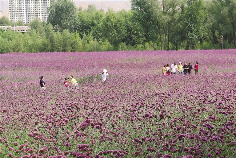 如果說涼爽是秋的前奏,那么絢麗便是它的主旋律。初秋的永靖黃河花堤,大面積馬鞭草競相盛開,絢爛如詩,吸引眾多居民和游客前來賞花打卡。遠看,大片的馬鞭草盛放成一片紫色的花海,秋千、風車、長椅點綴其間,行走其中,仿佛置身普羅旺斯的薰衣草田。沿著花海間的步道緩步前行,一陣微風裹挾著清甜的香氣迎面撲來,讓人頓感清涼舒暢、心曠神怡。