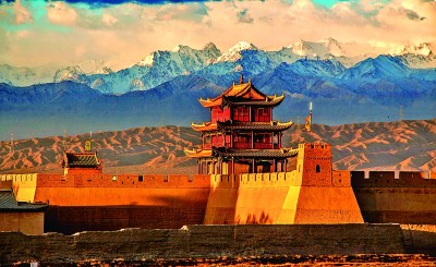 雄關(guān)六百載,長城越千年??唇癯?,戈壁之上,嘉峪關(guān)關(guān)城的朱色城樓與終年皚皚的祁連雪峰交相輝映,歷經(jīng)風霜久而彌堅;峭壁之巔,長城第一墩矗立于此,腳下流淌的討賴河水澎湃不息;山脊之上,懸壁長城形似凌空倒掛,氣勢雄偉。