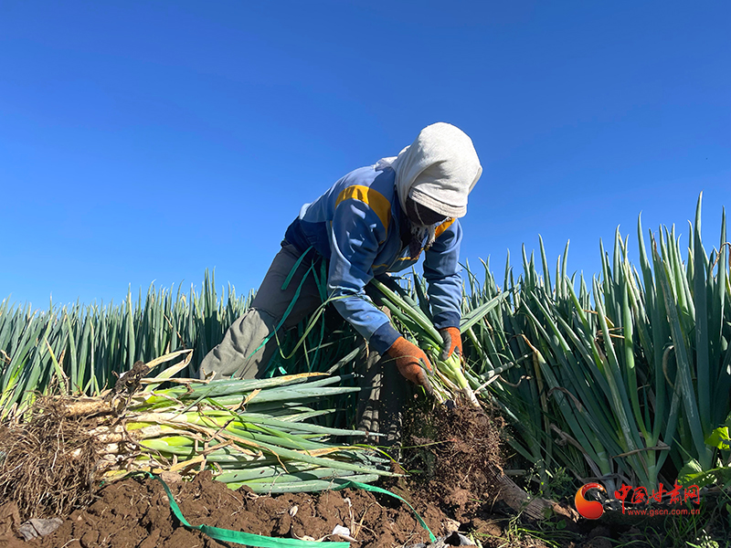 金秋時節(jié),山丹縣清泉鎮(zhèn)南關(guān)村的260畝大蔥迎來了豐收。