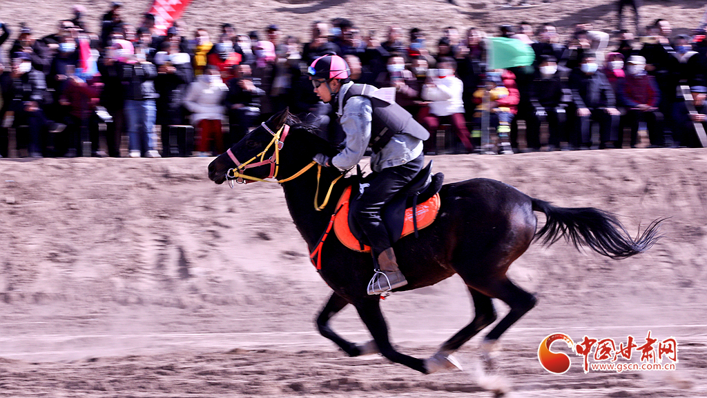 近日,位于祁連山下的甘肅省張掖市山丹縣一賽馬產業(yè)園內,騎手們正在為游客表演精彩的馬術運動。