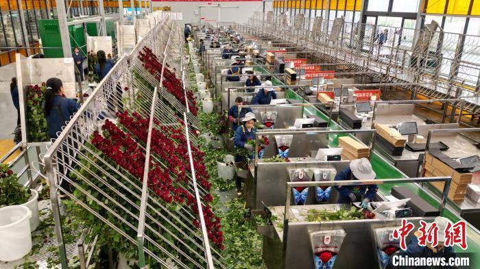 近年來,當(dāng)?shù)靥岢?ldquo;打造魅力花都、建設(shè)公園城市”,聚焦“浪漫經(jīng)濟(jì)”,大力發(fā)展鮮切花產(chǎn)業(yè)。交通便利、人力資源富集是吸引這座“超級(jí)玫瑰工廠”國(guó)際鮮花港落戶臨夏的主因。