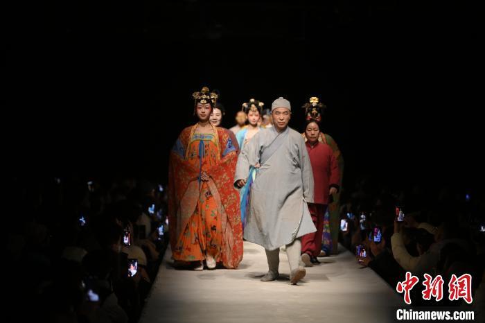 2025年1月9日晚,在甘肅敦煌大型室內(nèi)情景體驗(yàn)劇《又見敦煌》劇場內(nèi),游人在行走中觀看演出。中新社記者 李亞龍 攝