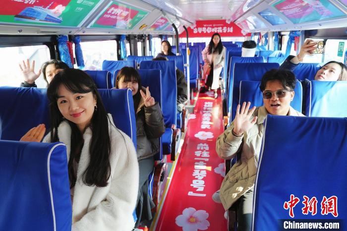 3月16日,武漢文旅城市環(huán)游巴士櫻花專線啟動。鄒浩 攝