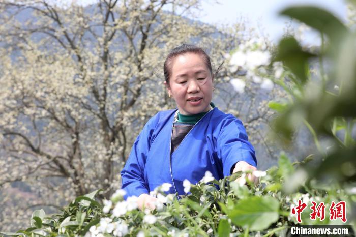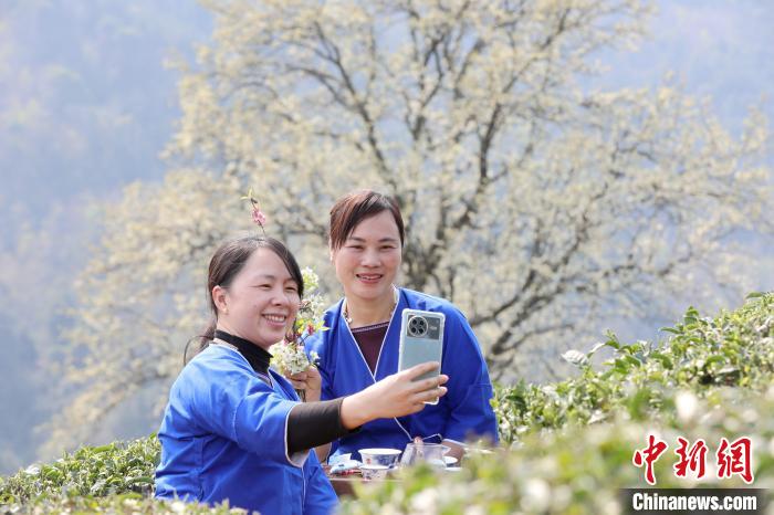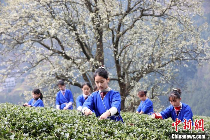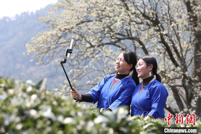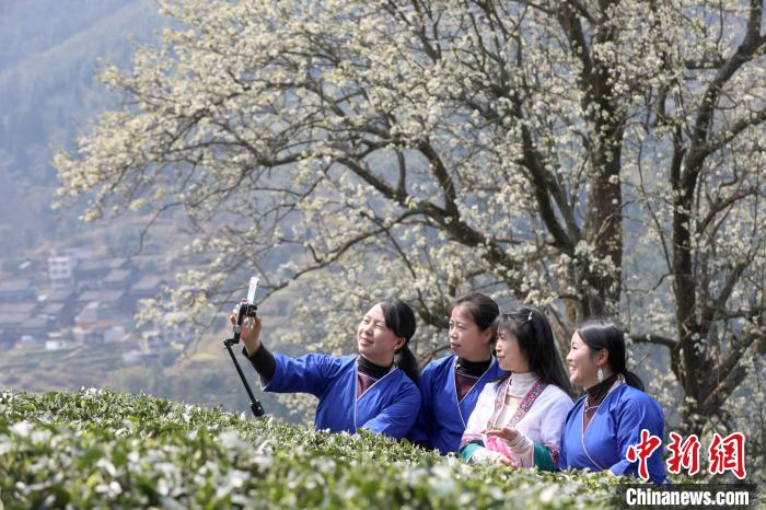 3月16日,廣西三江侗族自治縣八江鎮(zhèn)歸令村六更屯種植的千樹梨花迎春綻放,與青翠茶園、特色民居相映成趣,構(gòu)成一幅如詩(shī)如畫的春日畫卷。當(dāng)?shù)卮迕窦坝慰图娂娗皝?lái)采茶賞花、“打卡”拍照,享受春日美好時(shí)光。圖為村民在采春茶。龔普康 攝