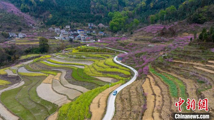 3月15日,在廣西田林縣浪平鎮(zhèn)浪平村,滿山盛開的桃花美景如畫。黃數(shù)情 攝