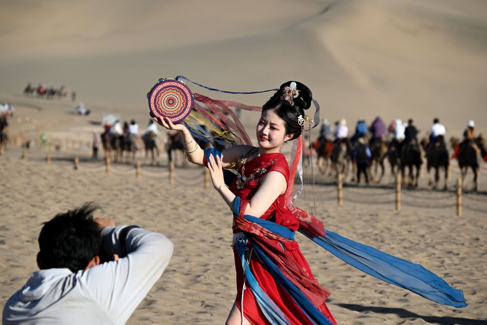近年來,甘肅省敦煌市深入挖掘特色資源,推出旅游優(yōu)惠政策措施、智能化體驗服務和低空飛行、旅拍等文旅項目產(chǎn)品,不斷豐富文旅業(yè)態(tài),激發(fā)文旅消費新動能。據(jù)敦煌市文旅部門統(tǒng)計數(shù)據(jù)顯示,今年1至4月份,敦煌市旅游接待人數(shù)538.78萬人次,同比增長25.8%。