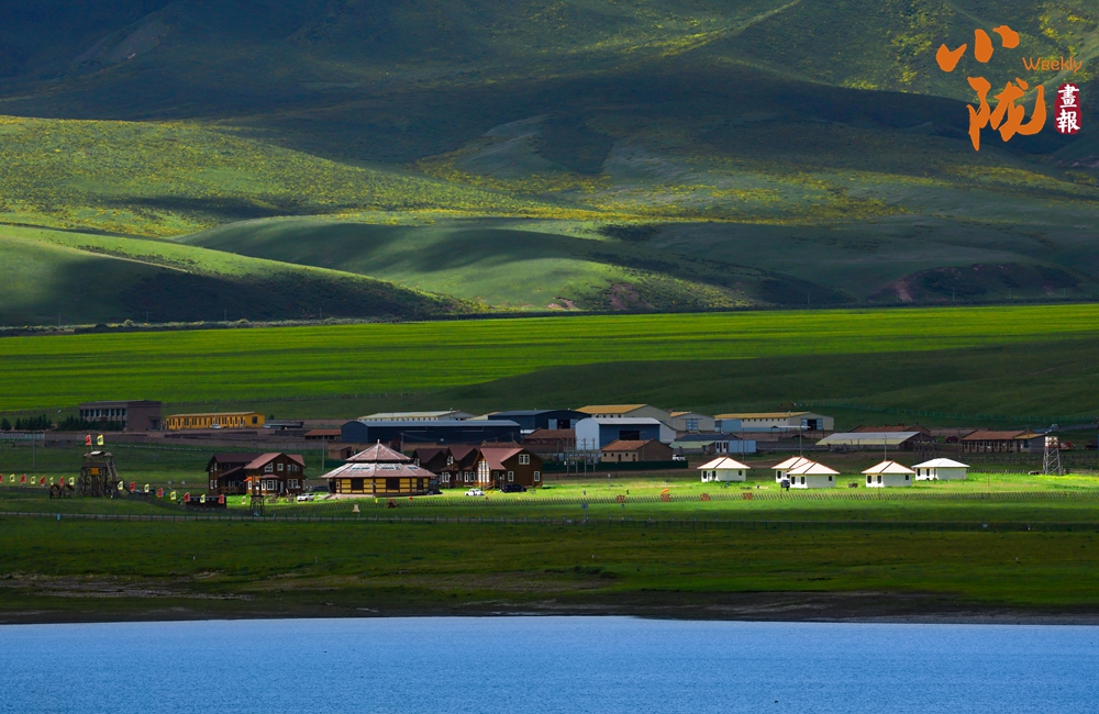 起伏的草地上,嫩綠的青草與明黃的野花混雜在一起,像極了一床素雅的織毯;點(diǎn)綴其間的牧民帳篷和現(xiàn)代民居、清澈的河流,則為這里增添了獨(dú)特的韻味和人文氣息。這片土地不僅承載了自然的恩賜,也記錄著人們與大自然和諧共處的故事。