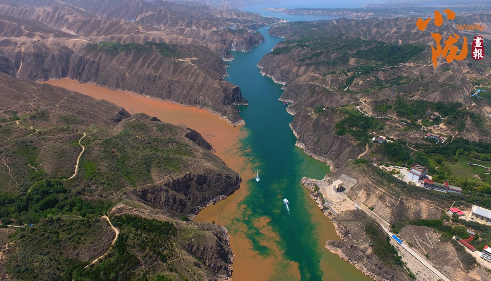 在劉家峽大壩附近,黃河、洮河以“Y”字形在龍匯山前交匯,它們輕盈碰撞,一清一濁、一藍(lán)一黃,形成了“涇渭分明”的界線,這便是著名的“黃洮交匯”奇觀。黃河從青藏高原奔流而下,上游地區(qū)植被覆蓋率高,水土侵蝕相對較弱,在這片水域,黃河平靜安寧,色藍(lán)清澈。洮河是黃河水系的重要支流,流經(jīng)碌曲、臨潭、臨洮等縣,流經(jīng)黃土高原西緣,河水?dāng)y帶大量泥沙,所以當(dāng)洮河跟黃河一交匯的時候,就會出現(xiàn)“黃河清,洮河黃”的神奇景象。