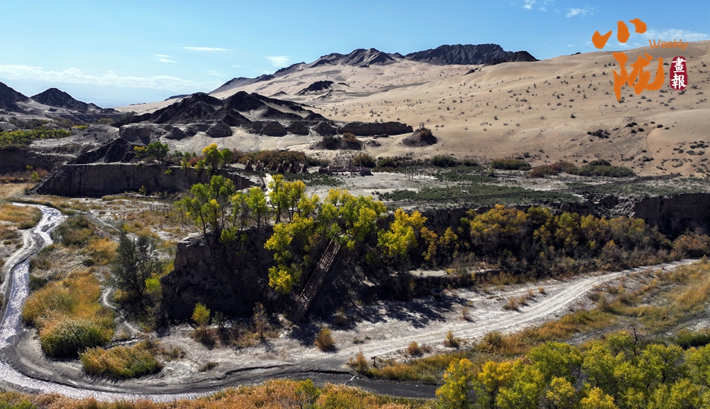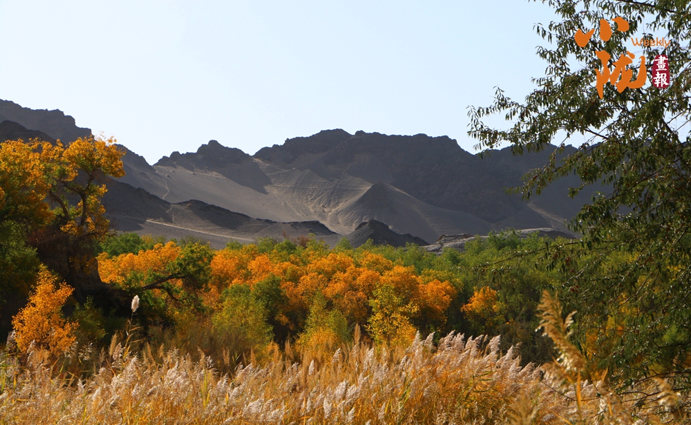 這里山勢(shì)奇特,因溝深線(xiàn)長(zhǎng),猶如峽谷,溝邊自生許多胡楊,被稱(chēng)為“胡楊峽”。你看,溝邊沙山林立,千年胡楊挺拔,溝內(nèi)溪水清澈纏綿,天然的紅柳、蘆葦、梭梭、沙棗樹(shù)等植被錯(cuò)落有致,共同繪就了一幅秋日畫(huà)卷。