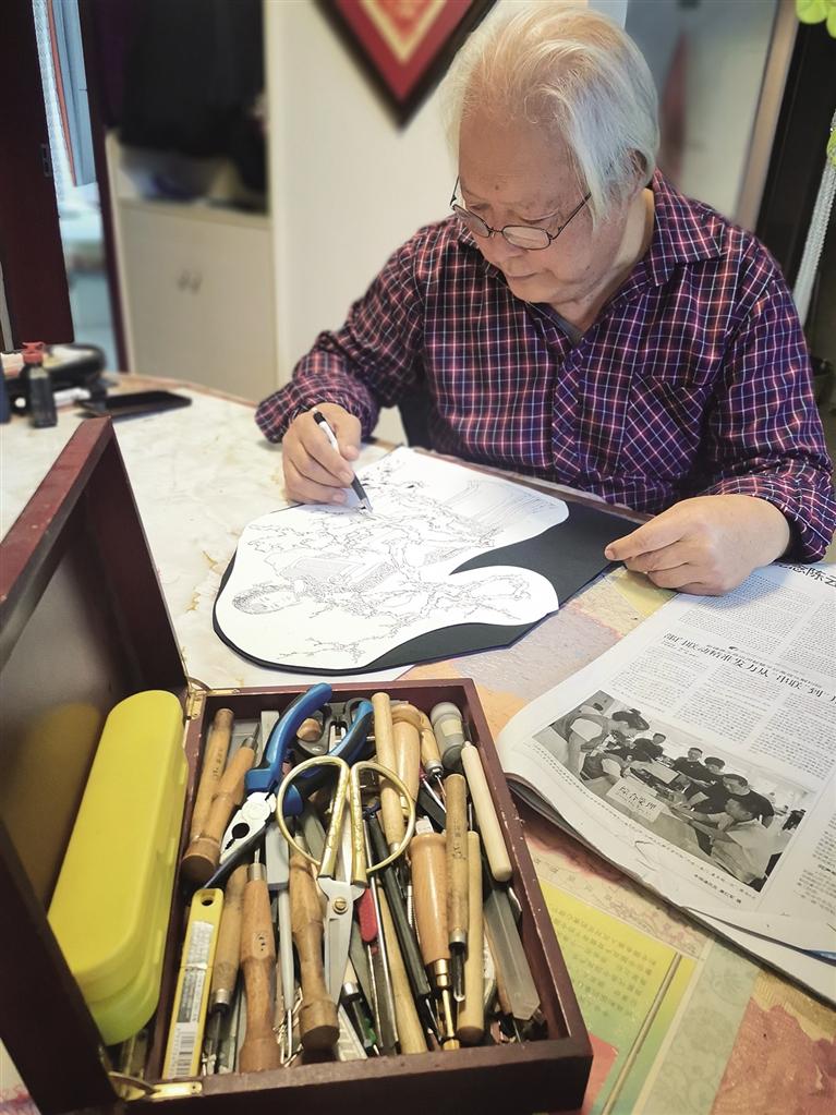 談到創(chuàng)作過程,他眼神中閃爍著匠人的嚴謹光芒:“剪一個好作品,首先要有一個構思,然后再把它畫出來,再去動剪刀、刻刀各種工具。” 在他這里,剪紙絕非簡單的“剪花樣”,而是嚴謹的藝術創(chuàng)作,是“胸有成竹”后的“運剪如風”。