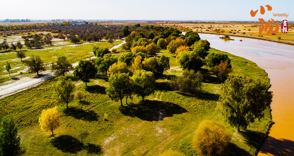 河堤兩岸各種樹木及灌木疊翠流金,綿延數(shù)里;碧波蕩漾,林鳥相依,呈現(xiàn)出獨(dú)具特色的沙漠濕地風(fēng)貌。