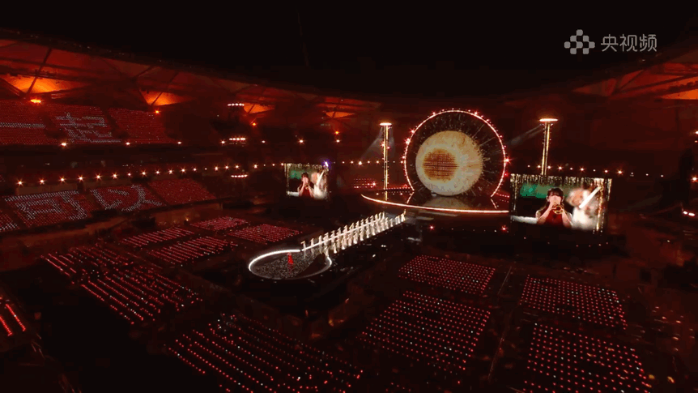 光,也是這場敘事中無聲的語言。燈光總監(jiān)董江從鴻蒙系統(tǒng)的開機(jī)動畫中汲取靈感,將極具辨識度的“星環(huán)”造型貫穿整個場館空間。設(shè)計團(tuán)隊不僅用數(shù)百臺燈光設(shè)備在舞臺上空構(gòu)建了一個直徑31米的超級光環(huán),更在體育場內(nèi)豎立起8組高達(dá)24米的立體燈光塔,讓每一位觀眾都被籠罩在“在一起”的視覺敘事之中。據(jù)總導(dǎo)演田梅介紹,那打動了無數(shù)網(wǎng)友、點(diǎn)綴在觀眾席上的四萬盞燈球,并非輕易鋪就的背景,而是歷經(jīng)超百位工人三次接力安裝、反復(fù)調(diào)試才得以呈現(xiàn)的呼吸光海。最初,這一設(shè)計曾因執(zhí)行難度而面臨調(diào)整,但在總導(dǎo)演田梅的堅持下,最終被完整保留。在她看來,這片星海是對盛典主題內(nèi)核的生動詮釋:“‘在一起,就可以’不僅是一句口號,更是對這個時代最溫暖的注腳。它告訴我們:再遙遠(yuǎn)的夢想,也終將在并肩同行中,變得觸手可及。”隨著節(jié)目播出,燈球呈現(xiàn)出“在一起,就可以”“鴻蒙星光盛典”等字符,明亮而浪漫。四萬星光分散在每一張座椅上,如同散落在千行百業(yè)、千家萬戶中的每一個開發(fā)者與用戶;它們又能連成一片星海,展現(xiàn)出“在一起,就可以”的力量。