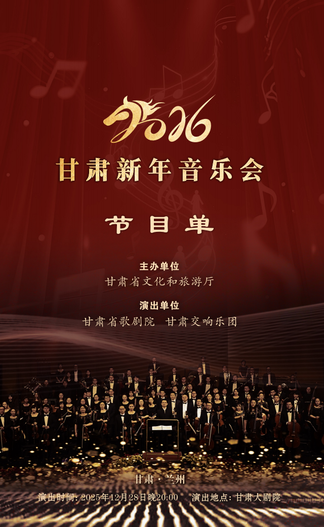 中國甘肅網(wǎng)12月24日訊(西北角·中國甘肅網(wǎng)記者 任磊)2026甘肅新年音樂會將于12月28日晚在甘肅大劇院奏響。本場音樂會由甘肅省文化和旅游廳主辦,甘肅省歌劇院、甘肅交響樂團承辦,將以一場中西合璧、氣勢恢宏的交響盛宴,為金城觀眾獻上誠意滿滿的新年祝福。