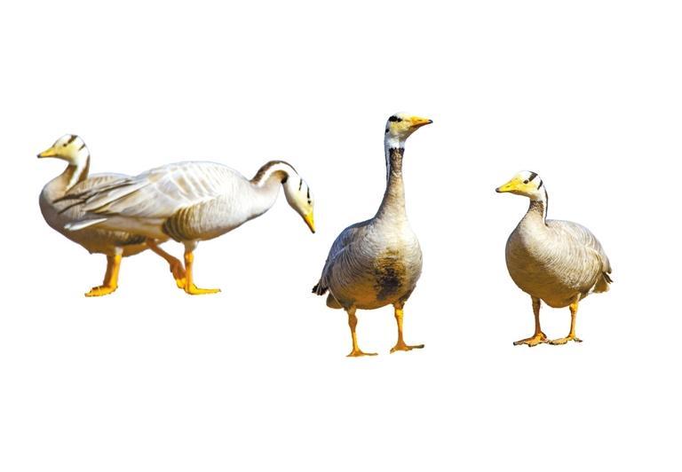 清晨的小蘇干湖最是動(dòng)人。霧靄在湖面緩緩流動(dòng),將遠(yuǎn)處的阿爾金山勾勒成淡墨色的剪影,蘆葦叢中突然傳來(lái)一陣“咕咕”的低鳴,幾只斑頭雁正抖落翅膀上的霜花,小心翼翼地走向水邊。它們是較早抵達(dá)的“客人”,每年初冬都會(huì)帶著雛鳥(niǎo)從青藏高原飛來(lái),在這里補(bǔ)充能量。斑頭雁披著一身深淺不一的灰褐色羽毛,頭頂白色,飾有兩道黑色斑紋,在晨光中看去,宛如戴著一頂別致的黑白禮帽,顯得格外俏皮。它們不常遠(yuǎn)行,多數(shù)時(shí)候只是在淺水區(qū)踱步,用扁平的喙撥開(kāi)冰層下的水草,啄食藏在其中的水生昆蟲(chóng)和植物種子。