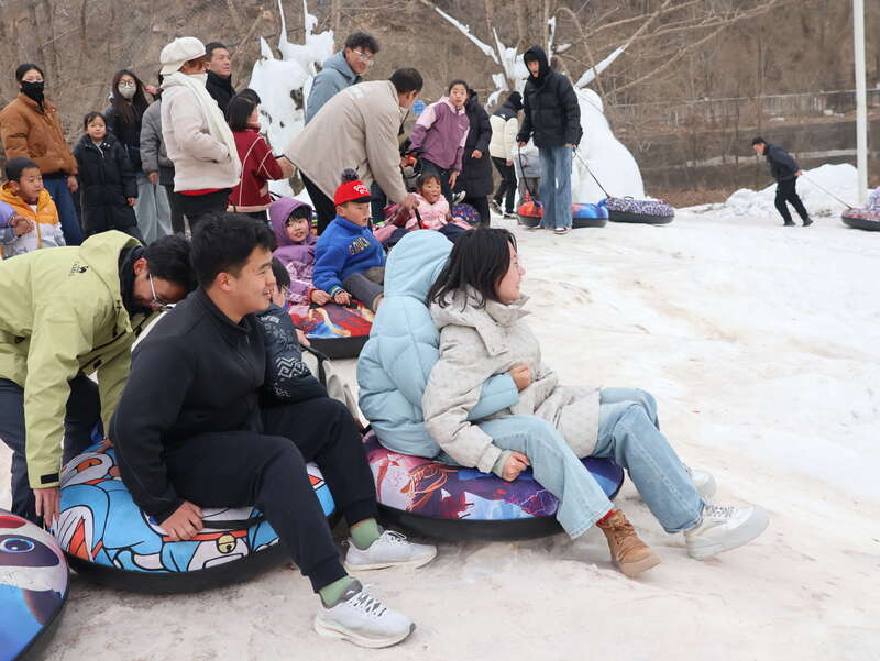 “冰雪之約,暢游遮陽”冰雪嘉年華現(xiàn)場,成年游客重拾童趣。中青報·中青網(wǎng)記者 王豪/攝