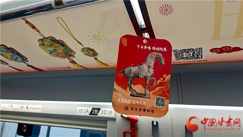 敦煌研究院車廂以“敦煌飛天·絲路梵音”為核心,壁畫與彩塑元素再現(xiàn)絲路藝術(shù)風(fēng)華;甘肅省博物館車廂聚焦“銅奔馬·隴原瑰寶”,盡顯鎮(zhèn)館之寶的歷史魅力;甘肅簡牘博物館車廂以“漢簡墨韻·邊塞風(fēng)華”為主題,訴說漢代邊塞的文明印記。