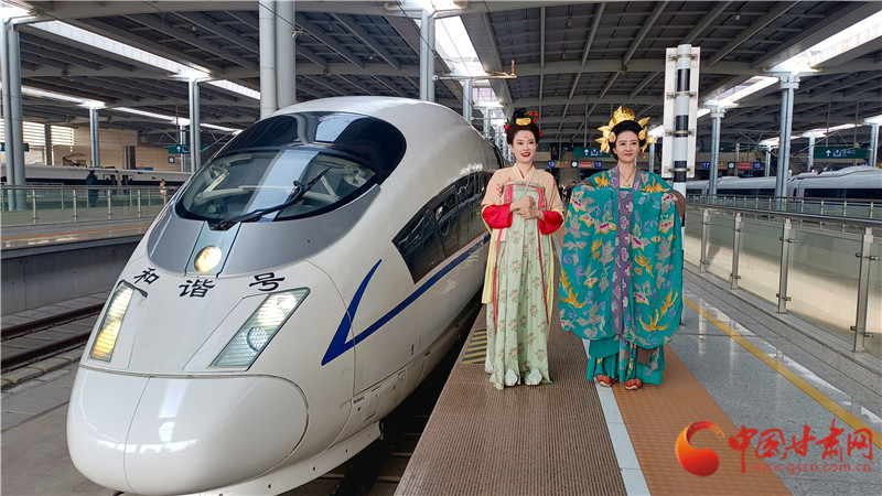 這趟列車,是敦煌研究院、甘肅省博物館、甘肅簡牘博物館、蘭州市博物館、天水市博物館、武威市博物館、平?jīng)鍪胁┪镳^、臨夏州彩陶館(州博物館)、和政古動物化石博物館九家國家一級博物館聯(lián)袂打造的“高鐵流動博物館”。