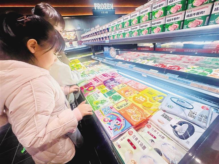 市民趙女士精心挑選果味元宵:“上次購(gòu)買(mǎi)的這款爆心啵啵元宵口感清爽細(xì)膩,老人孩子都愛(ài)吃,我們還跟著教程做了不同吃法,這不馬上快元宵節(jié)又逢開(kāi)學(xué),特意多囤一些。”市民李女士帶著孩子選購(gòu)了一款“馬到成功”奧巧味元宵。“往年多吃黑芝麻、水果味的元宵,今年想嘗點(diǎn)新意,這款價(jià)格實(shí)惠,孩子也喜歡。”李女士說(shuō)。