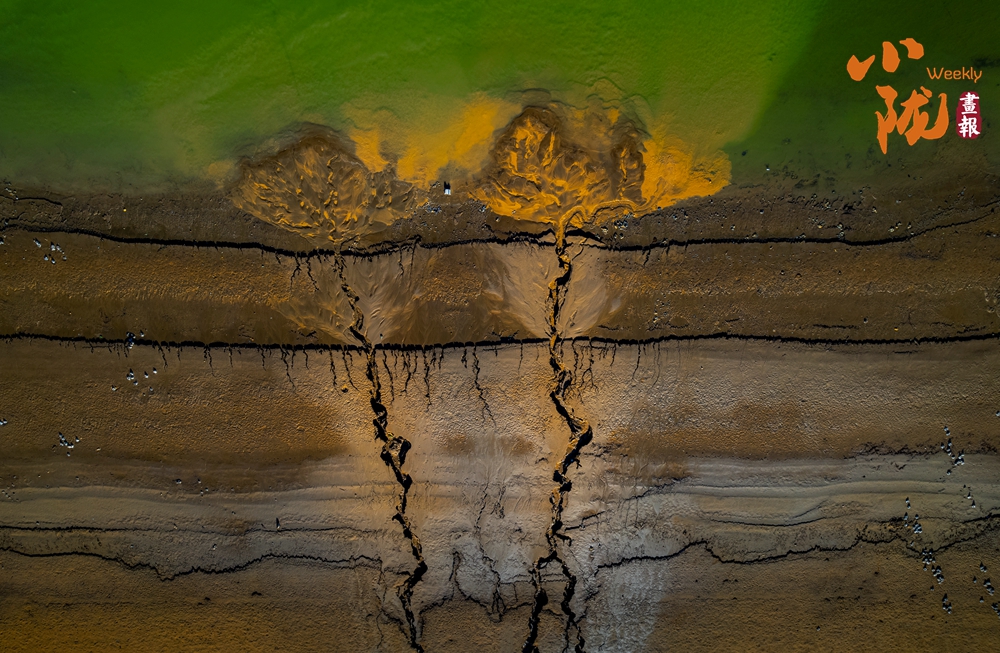 干燥的泥表交錯(cuò)分布、由主到次不斷分岔,形成如老樹虬根般蜿蜒伸展的圖案。那細(xì)膩而連貫的線條,猶如大自然親手繪制的一幅“根系地圖”,記錄著水分消退的足跡。