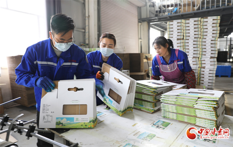 時下,在位于民樂工業(yè)園區(qū)的一家生產車間內,工人們正緊張有序地進行包裝盒裝配、成型作業(yè)。